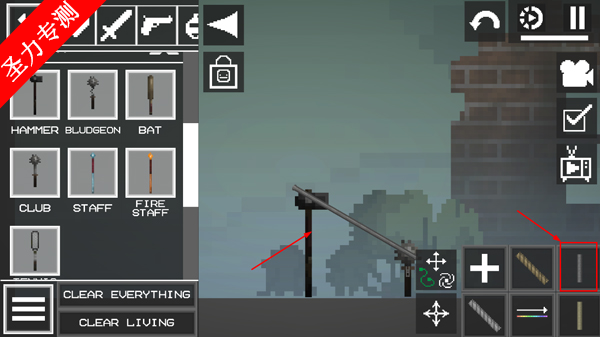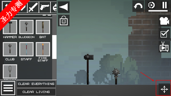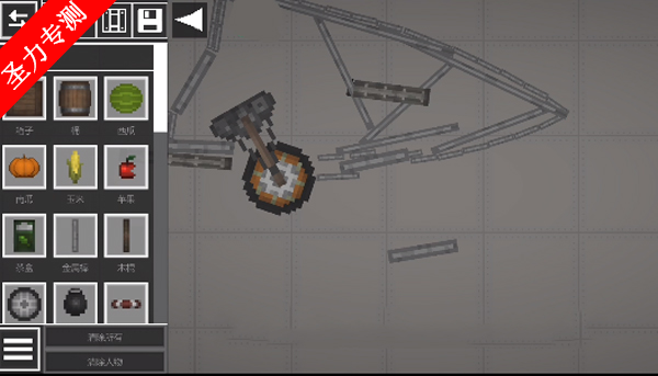 2、进入游戏如图,点击左上角菜单按钮,添加两个物品在地上;