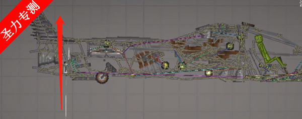 3、需要注意的是,这种不稳定的结构一定要加上支柱,即机头中间的长铁块,调成无重力不碰撞,链接到机头外壳即可