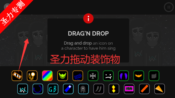 3、拖动装饰物到人物身上开始制作音乐