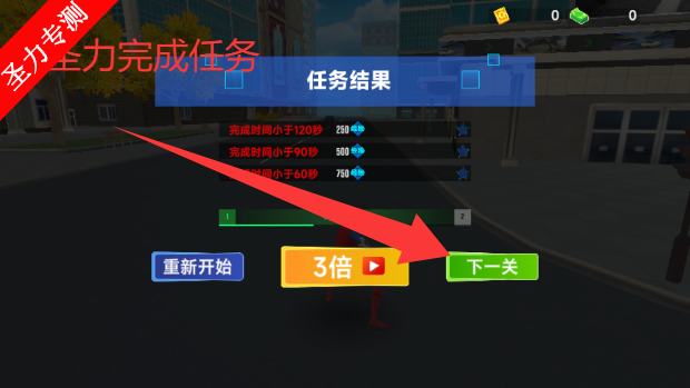 2、完成任务之后点击下一关继续执行