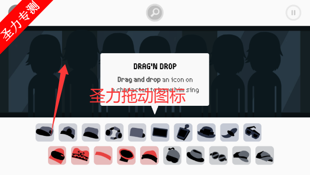 3、拖动装饰物图标到人物身上开始制作音乐