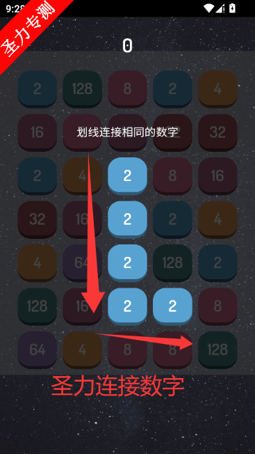 2、画线连接相同的数字进行合成