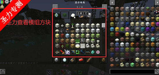 1、创造模式下可以看到模组内部的方块