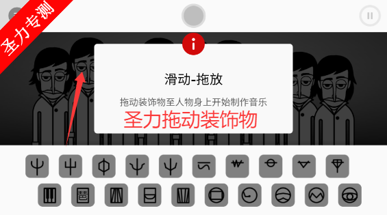 3、拖动装饰物到空白的人物身上即可发出对应的节奏声音