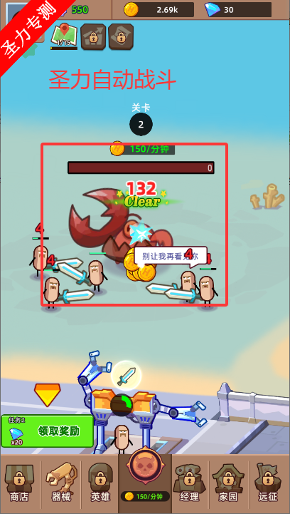 3、每个设备制作出的英雄会自动和怪物进行战斗