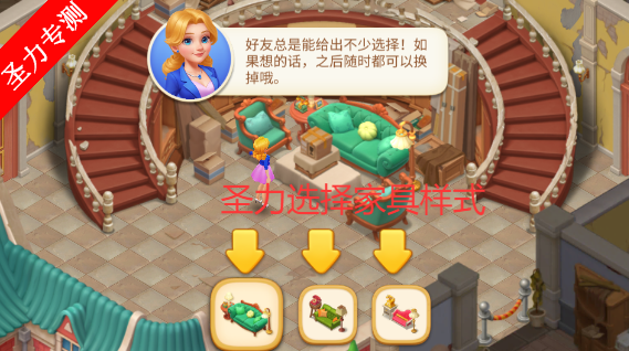 自由装饰个性化家园:利用关卡奖励解锁数千种家具、装饰品,自由布置房间与庭院,打造专属风格的梦幻庄园。