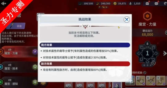 攻略「魔宫」副本的重点就是力量克制感知,感知克制技术,技术克制力量的相互克制关系。