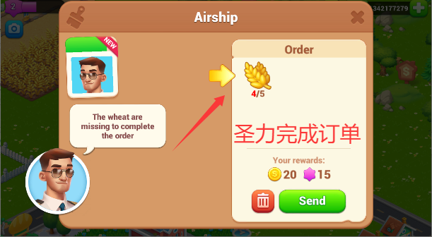 1、将小麦提供给前来采购的商人,换取金币和经验