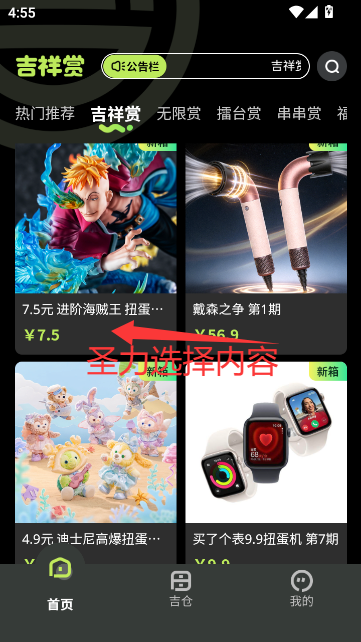 吉祥赏APP介绍吉祥赏APP是正版潮玩专属平台,汇聚热门IP动漫模型、限量盲盒及创意周边。采用抽赏+直购双模式,支持单人/组队玩法,搭配动态开盒动画与概率公