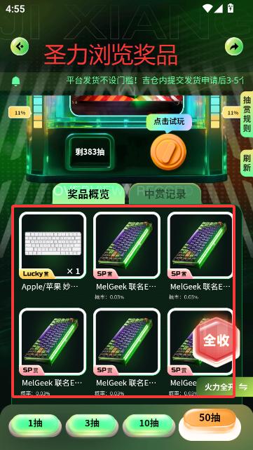 2、浏览下方的奖品和概率,开始抽奖