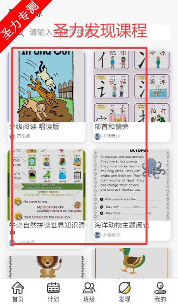 1、发现页面中可以查看其他老师或用户分享的优质课程