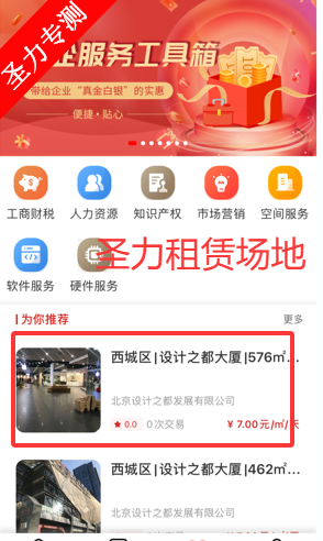 2、软件中可以查看可租赁的场地