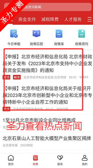 2、政策页面中可以查看近期热点新闻