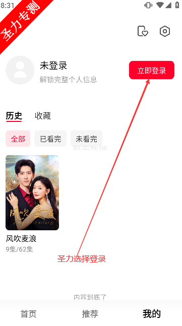 2进入我的栏目右上角立即登录