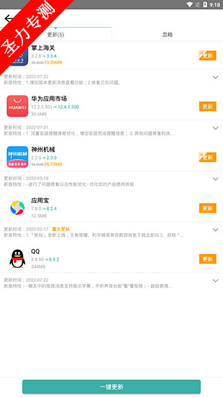 6、在应用更新列表中,下载更新已安装应用的最新版本