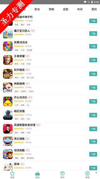 5、可以在游戏分类或者软件分类中浏览某一类的应用