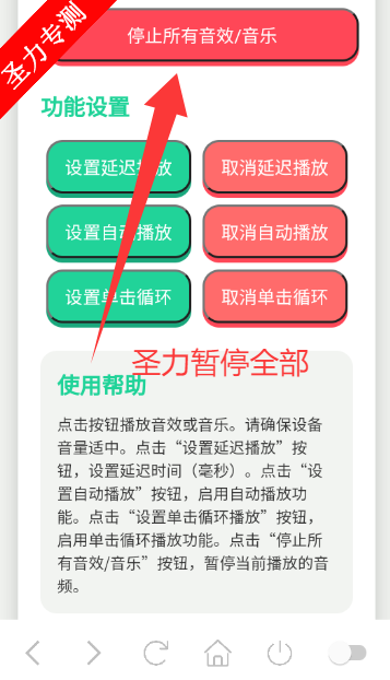 1、最底部按键可以停止全部音乐