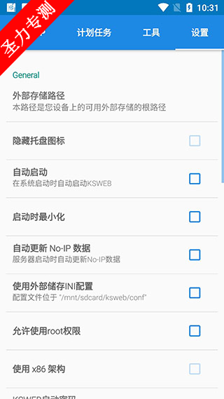 5、但是,如果要更改它们,请转到服务器选项并单击项目“ini files”。配置文件将移动到设备的sd卡,位置为“…\/sd card\/ksweb\/ini\/”
