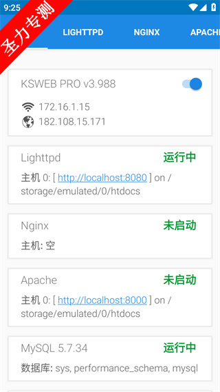 KSWEB手机服务器软件,可以一键在手机上搭建相关服务器项目,可以快速建立一个系统的办公使用网络,手机作为主控制端,承担数据传输分析工作,当然,对手机的性能也有较高需求。KSWEBapp主要用于临时服务器搭建,帮助大家解决一些服务器搭建需求,让您随时随地都能轻松办公。本次带来KSWEB最新版apk下载。
